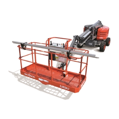 The pipe rack is rail mounted on the front of the platform making it convenient for loading and unloading materials. Manufactured by Skyjack and designed to fit their range of cherry pickers