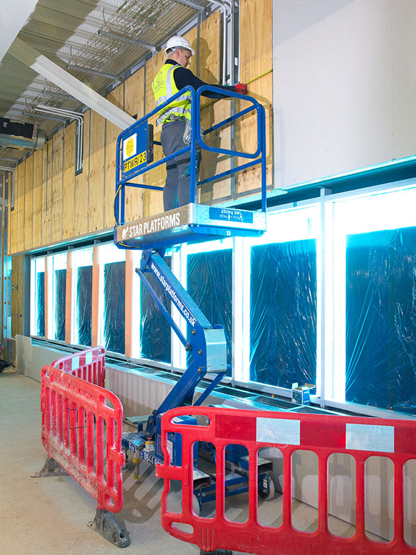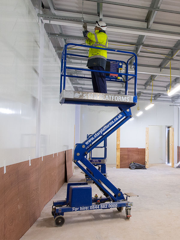 The Power Tower is an electric lift with a 5.10m working height and 250kg lifting capacity. The modern, lightweight and efficient alternative to aluminium towers, used for a variety of trades / applications such as interior fit out contractors, electricians, ductwork installers, painters & decorators, etc. This machine elevates using battery power and needs to be pushed into position. It is not self propelled.