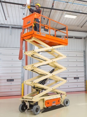 The JLG 3246 is an electric scissor lift with a 11.68m working height and a 450kg lifting capacity. Electric scissor lifts are usually used indoors for a variety of construction, installation and maintenance trades/tasks in the air, such as electrical fixtures & cabling, ductwork, drywall, ceiling panels, overhead sprinklers, etc.